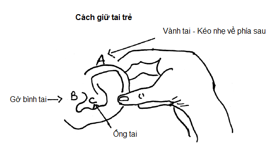 Trên thực tế, không ít cha mẹ tỏ ra quá sốt sắng trong việc làm vệ sinh ống tai cho con. Tốt nhất nên tránh dùng tăm bông hoặc các vật dụng dài để đưa vào tai của trẻ. Khi quá mạnh tay, tăm bông còn có thể làm tổn thương, thậm chí gây thủng màng nhĩ. Hàng ngày, khi tắm cho bé, mẹ chỉ cần dùng khăn ướt lau nhẹ vùng tai ngoài là đủ.