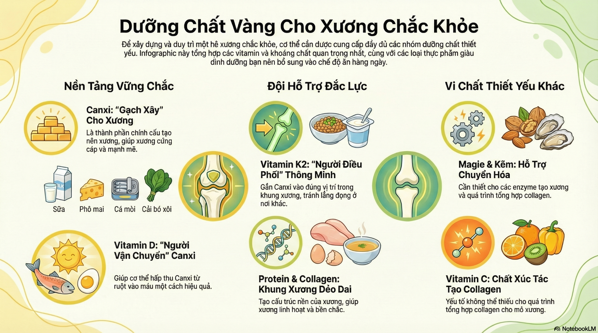 Nam giới nên duy trì chế độ ăn đầy đủ năng lượng, canxi, vitamin D và vitamin K2; tập luyện đều đặn bằng các bài tập phù hợp để hỗ trợ tăng mật độ xương. Tránh hút thuốc, hạn chế rượu và quản lý stress vì các yếu tố này làm xương yếu đi. Những người có yếu tố nguy cơ như tiền sử gãy xương, bệnh mạn tính hoặc dinh dưỡng kém nên chủ động kiểm tra sức khỏe xương. Duy trì cân nặng hợp lý, ngủ đủ và hoạt động xã hội thường xuyên là các biện pháp phòng ngừa quan trọng để bảo vệ sức khỏe xương lâu dài.