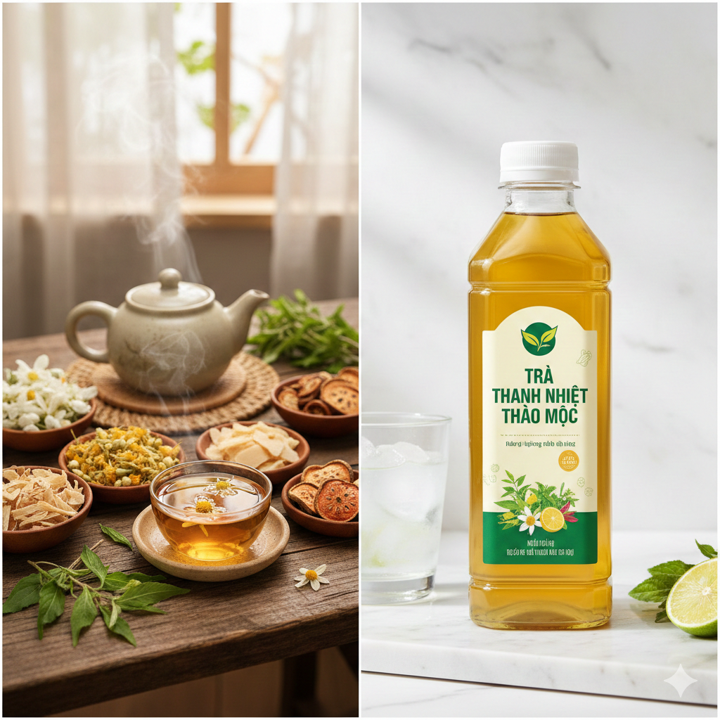 Một số sản phẩm thương mại phối hợp nhiều vị thảo mộc truyền thống (ví dụ: kim ngân hoa, cúc hoa, đản hoa, la hán quả, hạ khô thảo, cam thảo, hoa mộc miên, v.v.) nhằm tạo ra thức uống tiện lợi và cung cấp một “tổ hợp” các hợp chất thực vật.