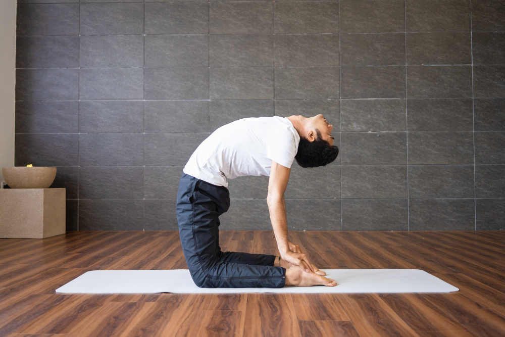 - Hít vào, võng lưng xuống, mở ngực ra trước, mắt hướng lên trần nhà.