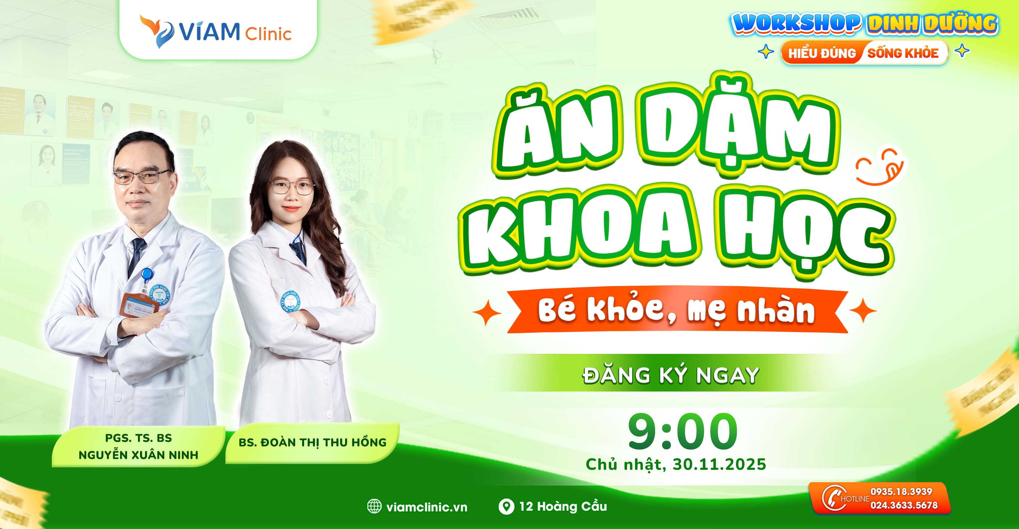 Với chủ đề “Ăn dặm khoa học, bé khỏe mẹ nhàn”, workshop tháng 11 do Phòng khám chuyên khoa dinh dưỡng VIAM tổ chức sẽ mang đến cho cha mẹ những kiến thức khoa học và thực tế nhất về ăn dặm, giúp hiểu đúng – làm đúng – để con ăn ngon, phát triển toàn diện.